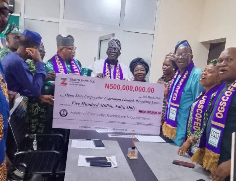 As part of efforts to bolster local businesses and stimulate grassroots economy, the Ogun State Government through the Ministry of community development and cooperatives has presented a cheque of ₦500 million to Ogun State Co-operative Federation Limited (OGSCOFED) on Friday 13th March, 2026 at Oke Mosan, Abeokuta.